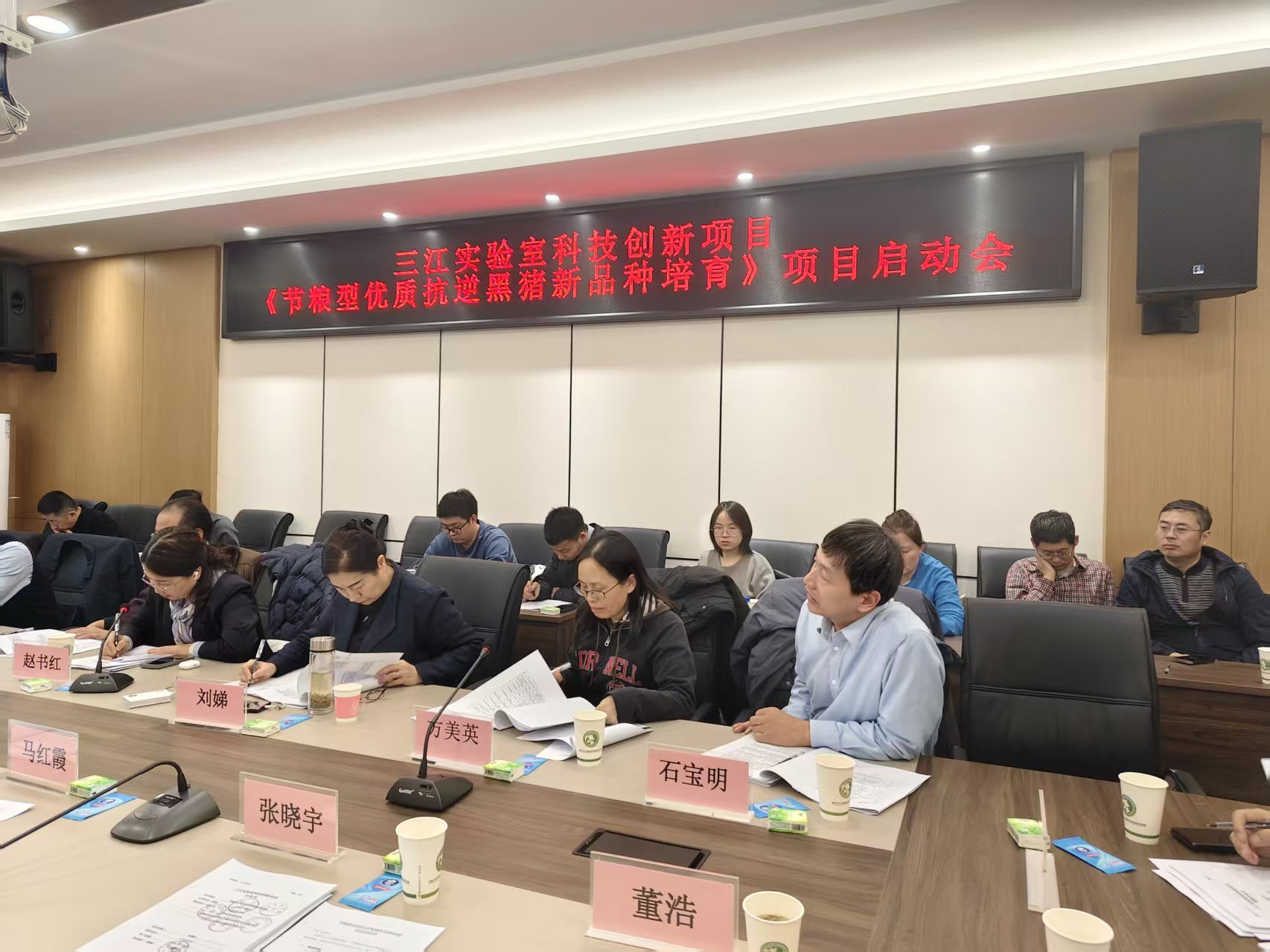 2025年12月21日,三江实验室首批科技创新项目——“节粮型优质抗逆黑猪新品种培育”项目启动会与工作推进会在吉林农业大学新农科长白山创新学院430会议室召开。中国工程院院士赵书红,三江实验室常务副主任、吉林农业大学副校长马红霞出席会议。项目组邀请浙江大学、中国农业大学等9位相关领域专家为项目实施提供专业指导。